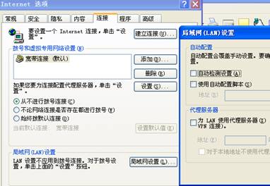 ※在選項卡連接處找到局域網設置一自動檢測設置(對勾去掉)