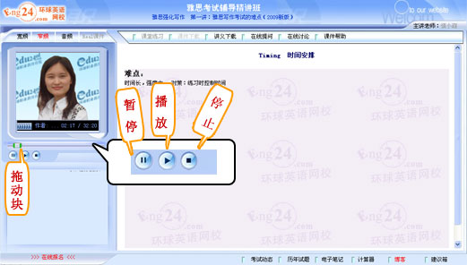 聽課的過程中是可以暫停的,網校的課件播放有兩種形式,詳見圖解。