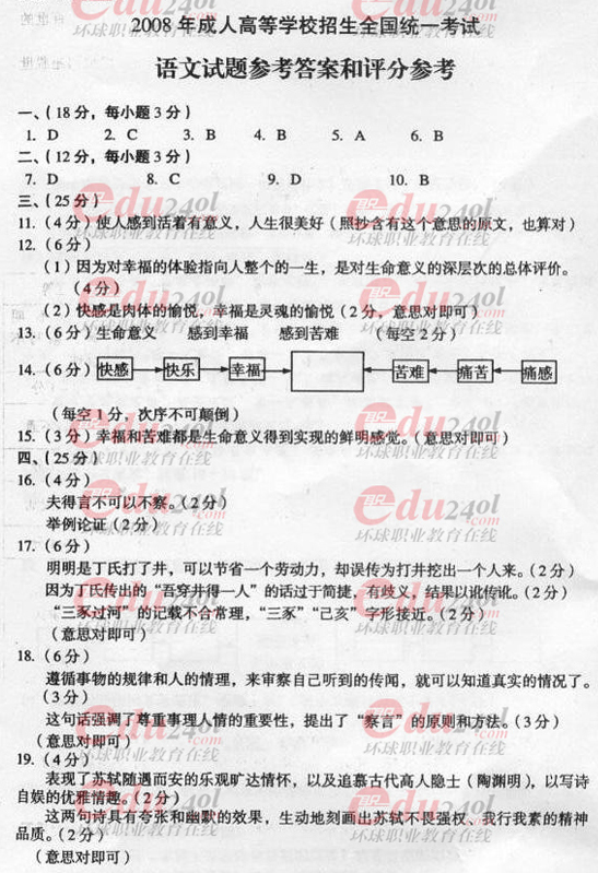 - 2025成人高考語文真題及答案解析匯總2025-10-22