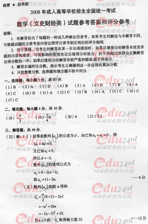 - 2025成考高起專數學真題(文)下載!含答案速查2025-10-20