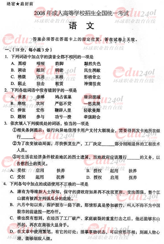 - 2025成人高考語文真題及答案解析匯總2025-10-22