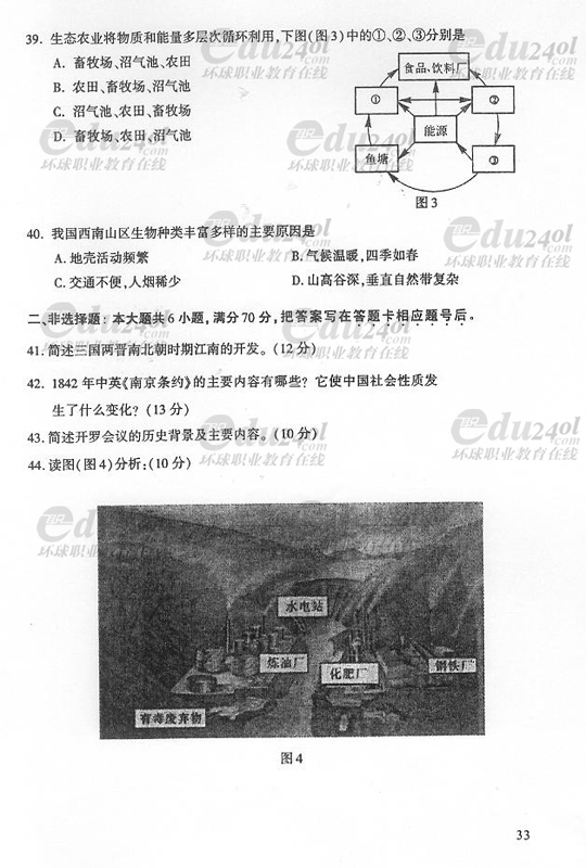 2008年成人高考高起點歷史地理試題
