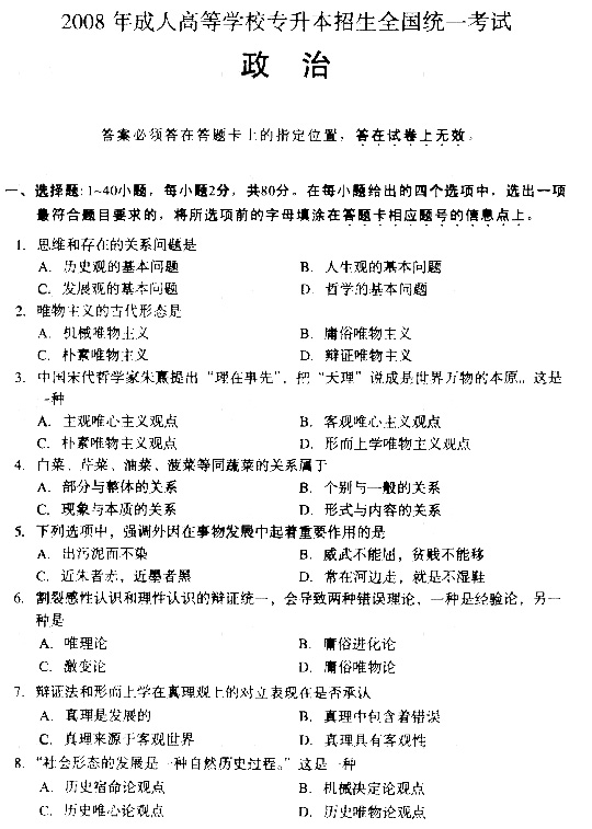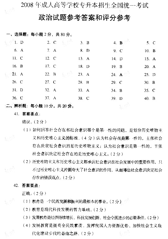 - 2025成人高考試卷政治真題及答案匯總已更新2025-10-22