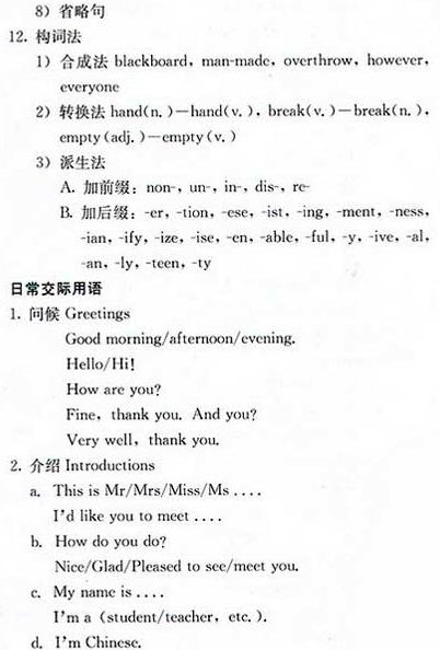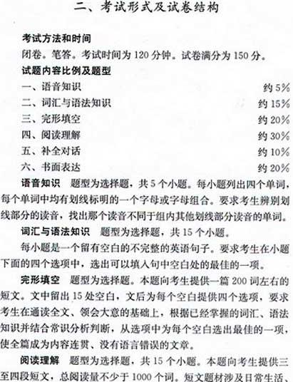 2009年成考高起點英語考試大綱