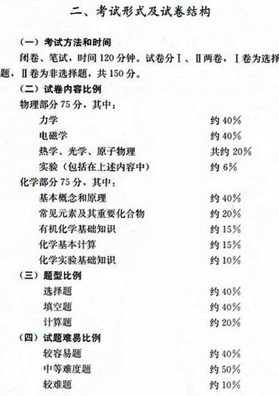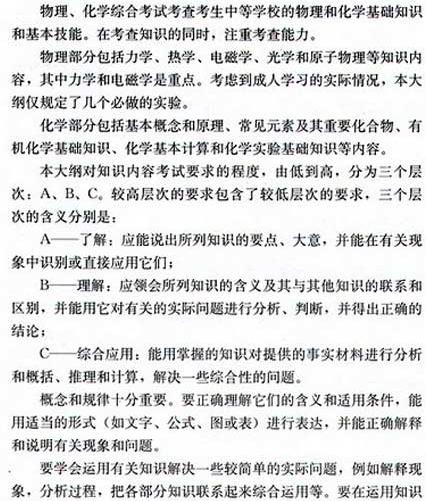 教育部消息:2009年成人高考高起點理化綜合沿用2007年高起點理化綜合考試大綱