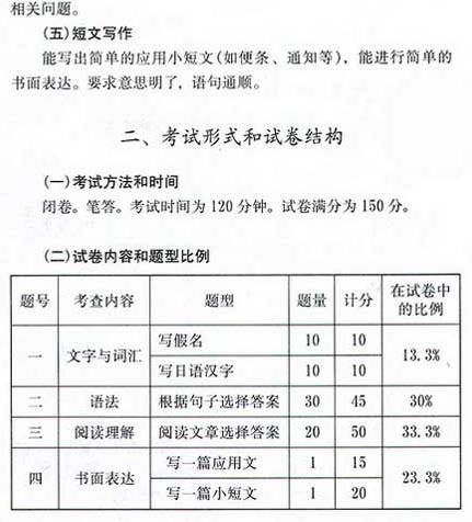 2009年成考高起點日語考試大綱