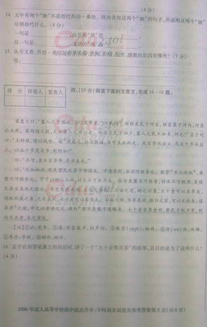 當前位置: 首頁 > 成人高考 > 成人高考歷年試題 > 2006年成考專升本語文全國統考試卷