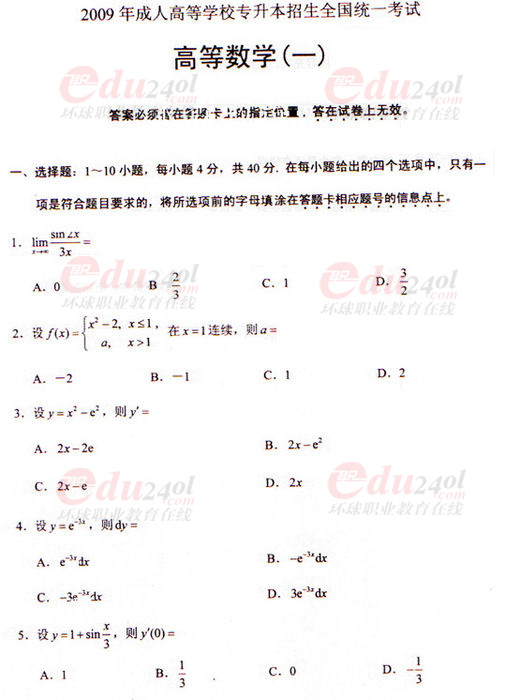 - 2025成人高考高等數(shù)學一真題+答案PDF免費下載2025-10-21