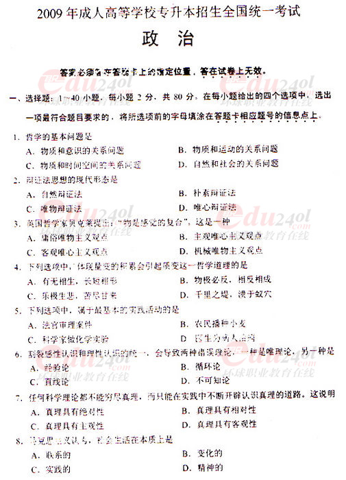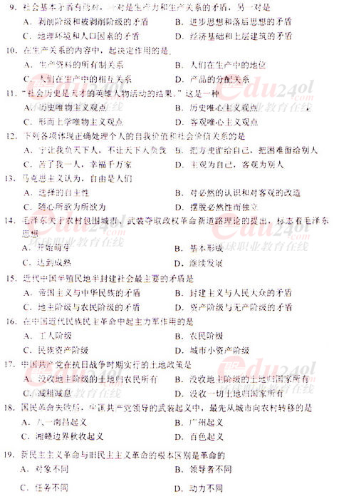 當前位置: 首頁 > 成人高考 > 成人高考歷年試題 > 2009年成人高考專升本政治真題