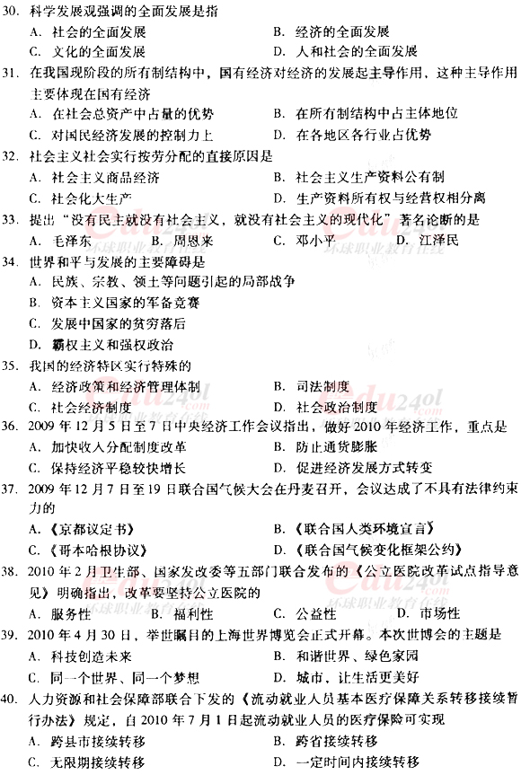 當前位置: 首頁 > 成人高考 > 成人高考歷年試題 > 2010年成考專升本政治真題及答案