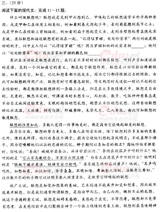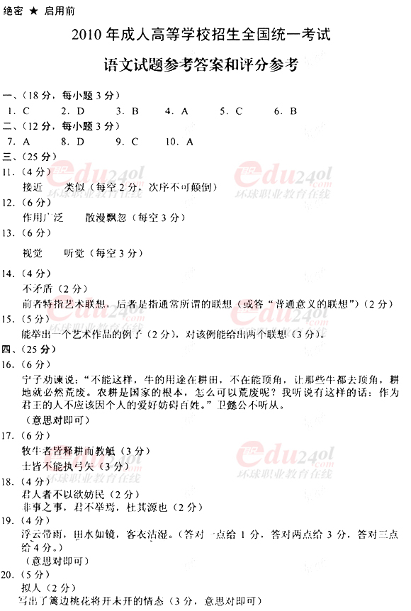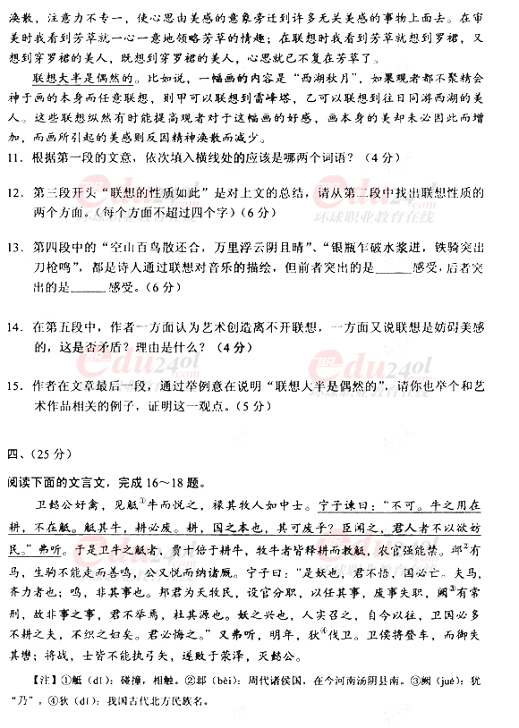 - 2025成人高考語文真題及答案解析匯總2025-10-22
