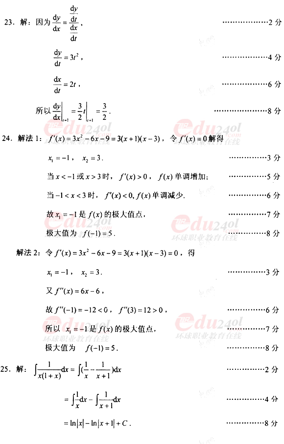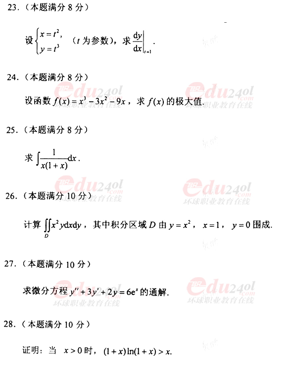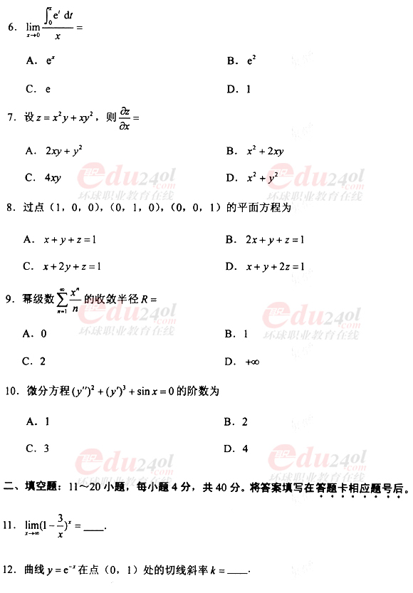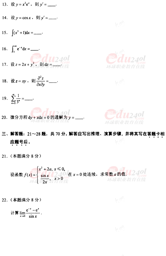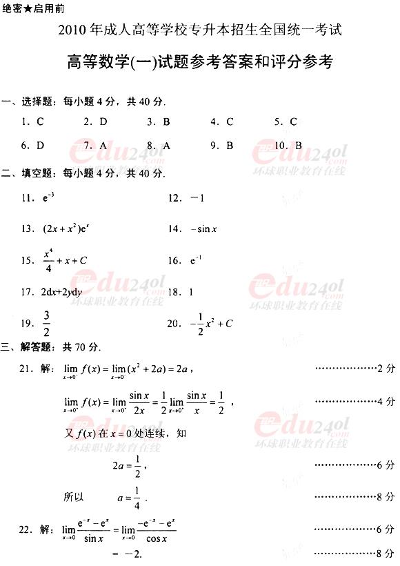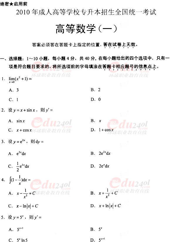 - 2025成人高考高等數學一真題+答案PDF免費下載2025-10-21