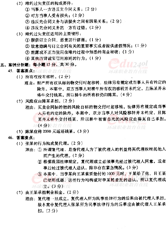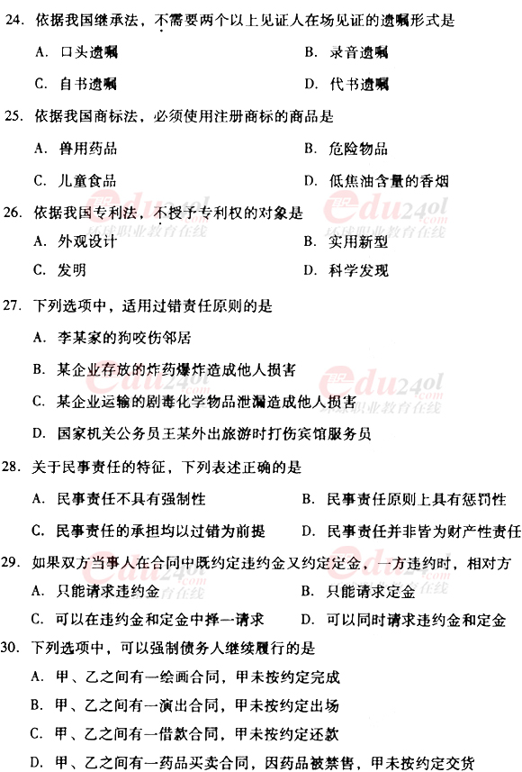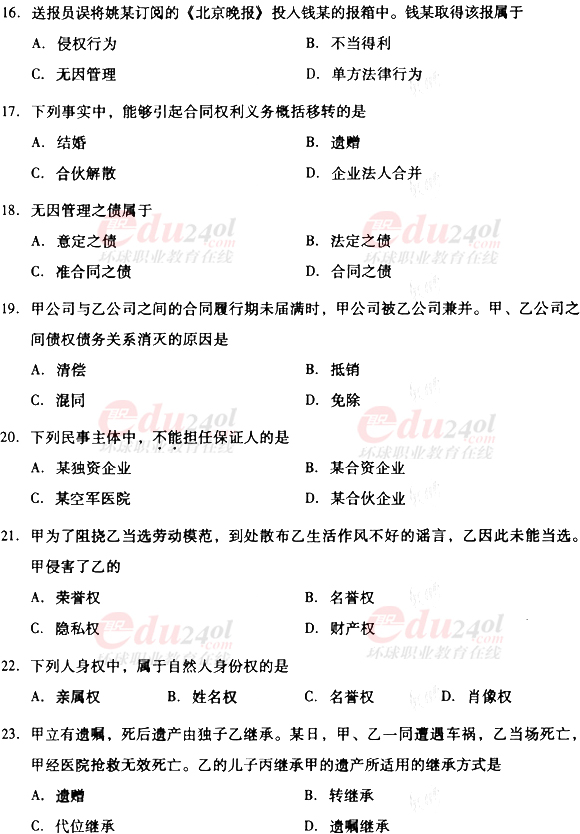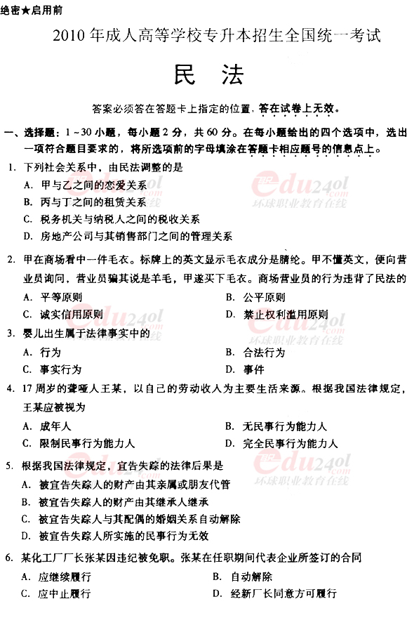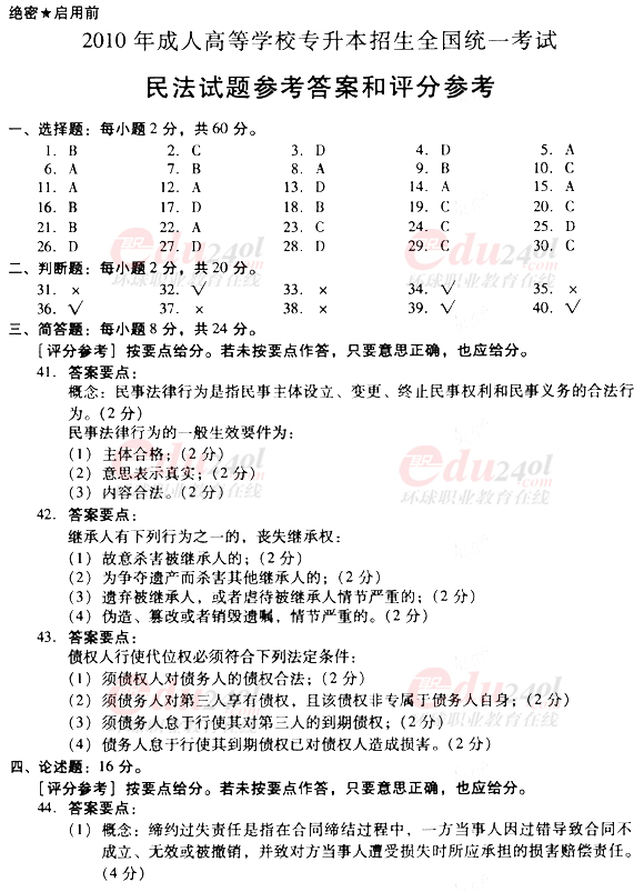 當前位置: 首頁 > 成人高考 > 成人高考歷年試題 > 2010年成考專升本民法真題及答案