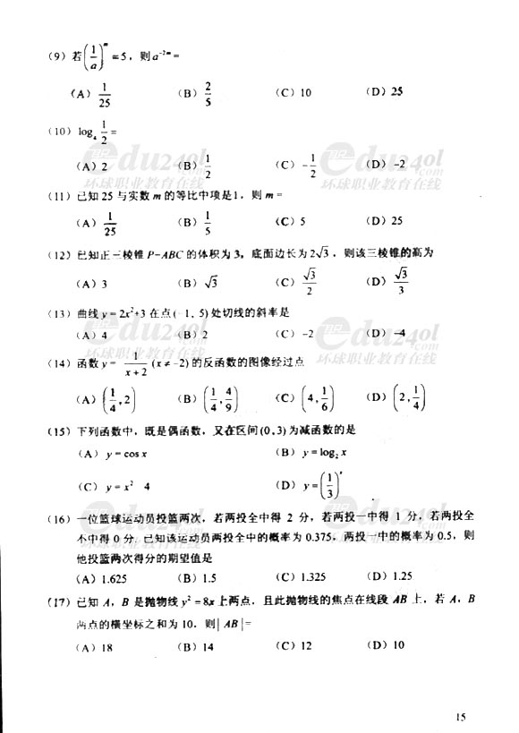 - 2025成考高起專數學真題(文)下載!含答案速查2025-10-20