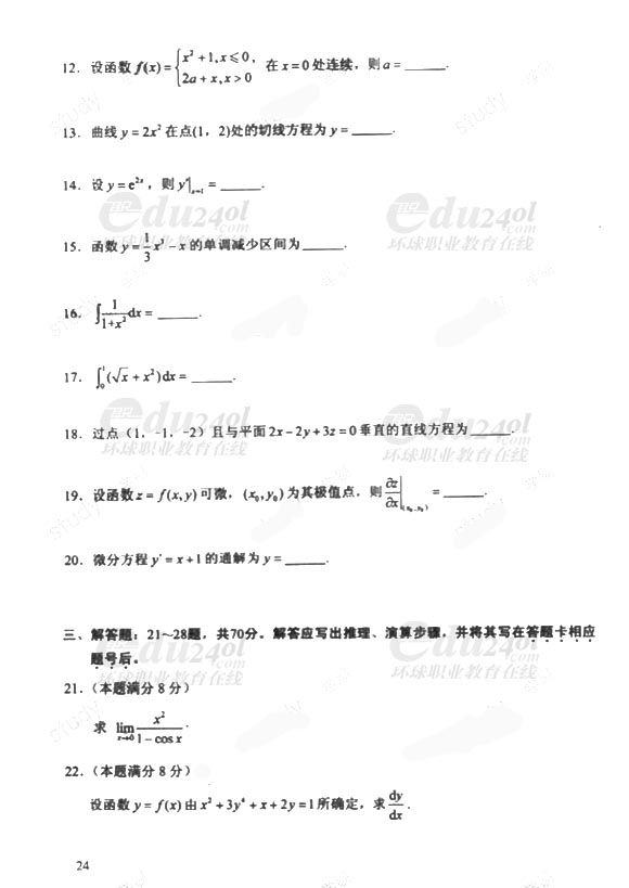 當前位置: 首頁 > 成人高考 > 成人高考歷年試題 > 2011年成人高考(專升本)高等數學(一)試卷及答案