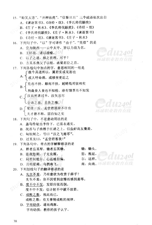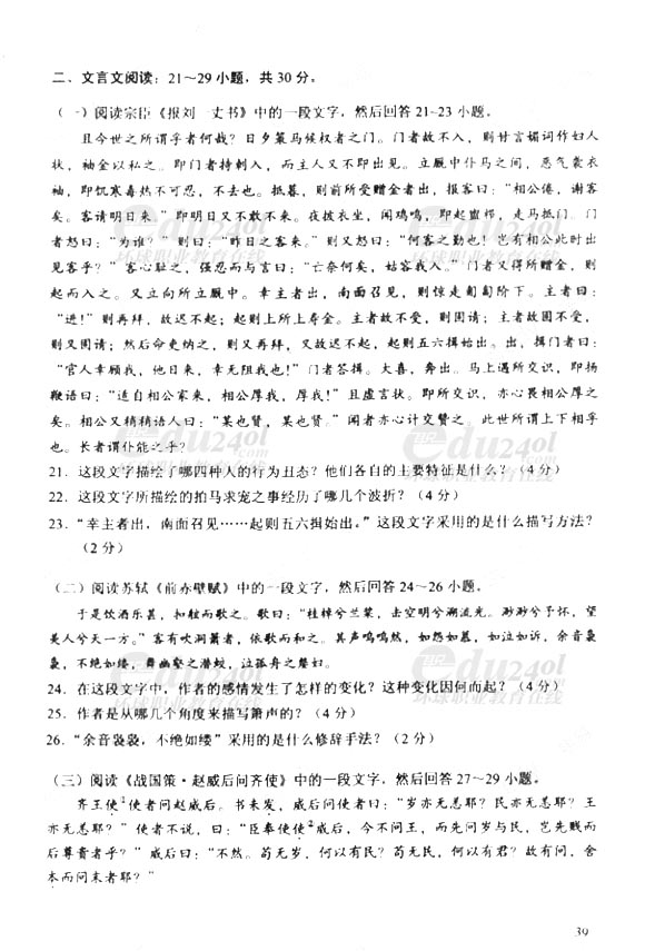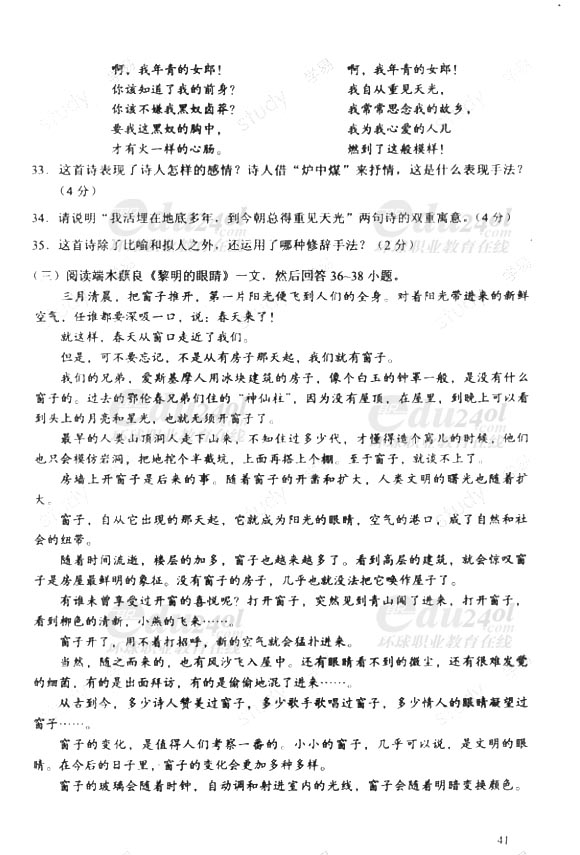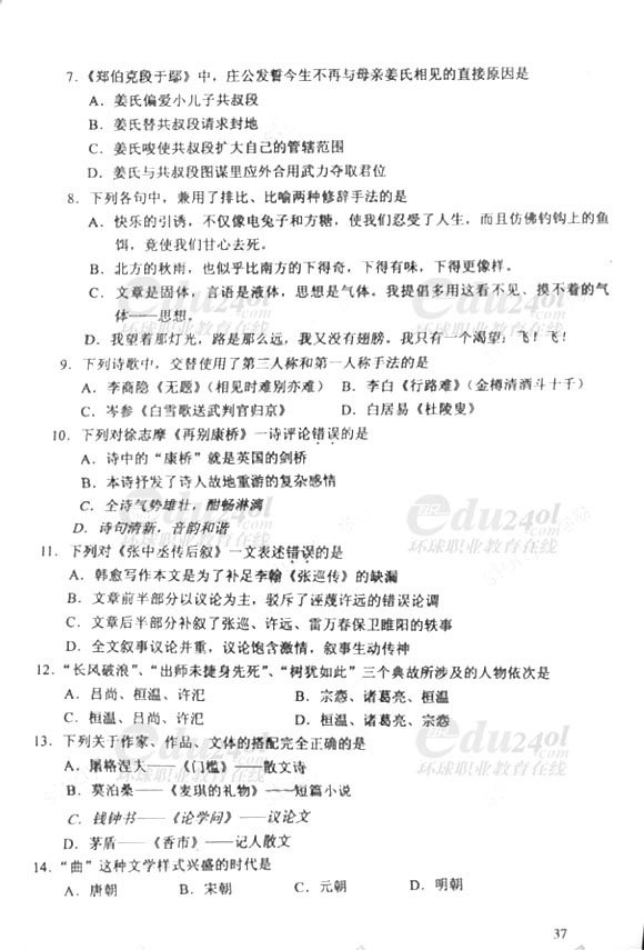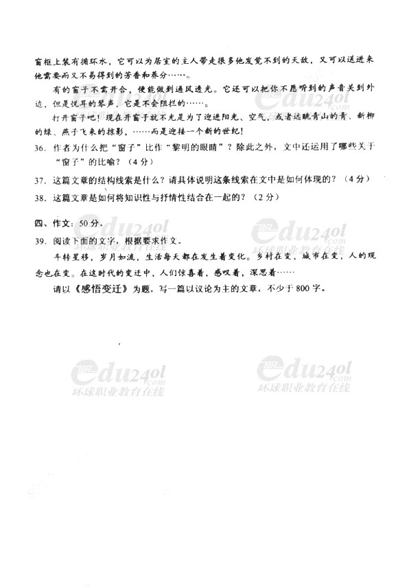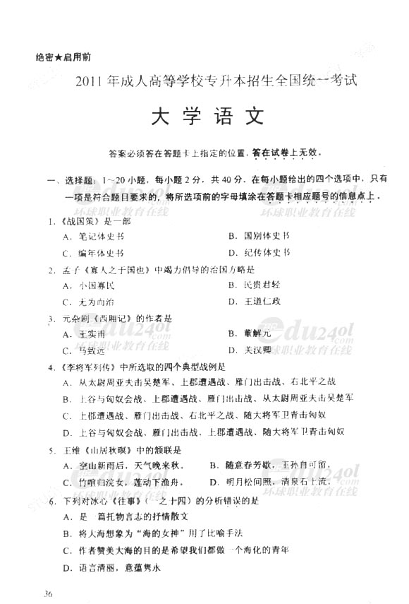 當前位置: 首頁 > 成人高考 > 成人高考歷年試題 > 2011年成人高考(專升本)語文試卷及答案