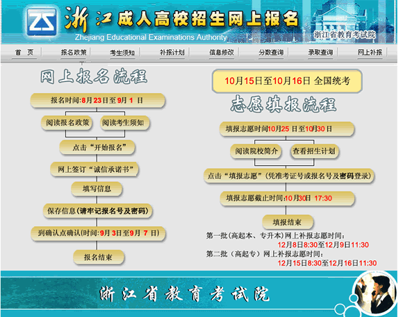 浙江2011年成人高考第二批(專) 補報志愿入口