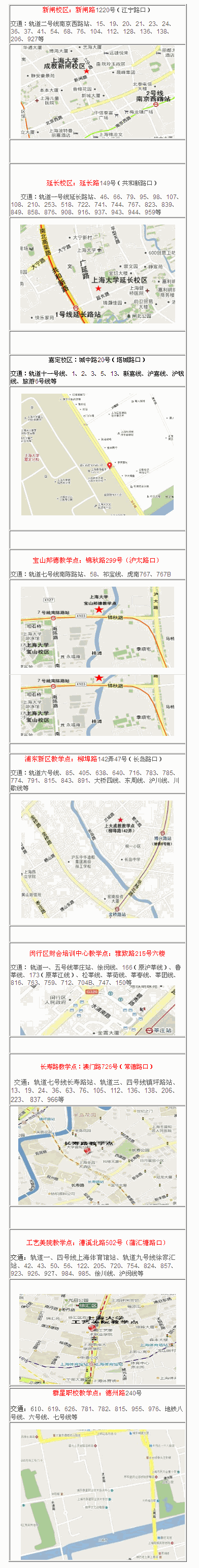 1.靜安區(qū):新閘路1220號Tel:62156093 (上海大學新閘校區(qū))高復班Tel:62561353
