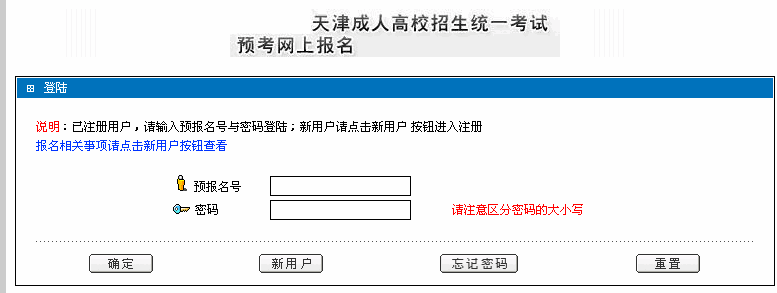當前位置: 首頁 > 成人高考 > 成人高考考試報名 > 天津市2012年成人高考預考網上報名入口