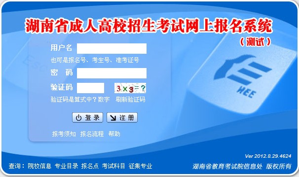 湖南省2012年成人高考網上報名入口開通
