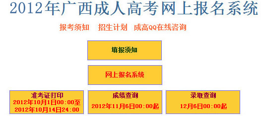 廣西2012年成人高考報名入口開通