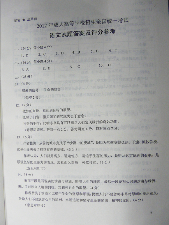 當前位置: 首頁 > 成人高考 > 成人高考歷年試題 > 2012年成考高起點語文真題答案(完整無水印版)
