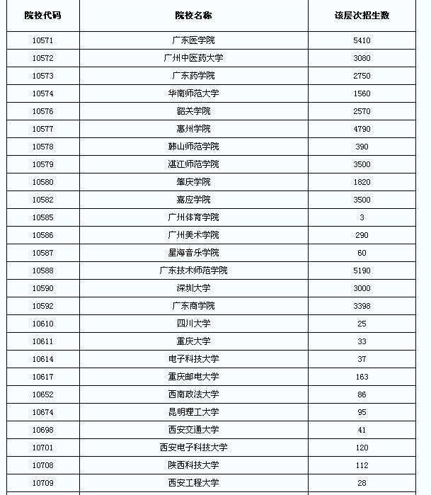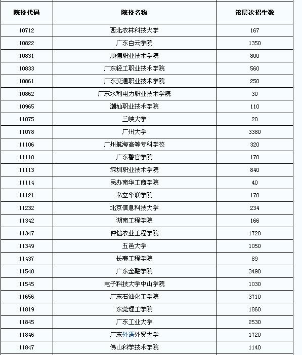 摘要 廣東2012年成人高考專科函授業余班招生計劃