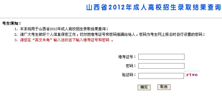 山西省2012年成人高考錄取查詢入口開通