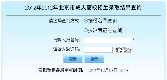 點(diǎn)擊進(jìn)入>>2012年北京成人高考錄取結(jié)果查詢系統(tǒng)