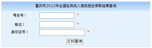 摘要 2012年重慶成人高考錄取結果查詢入口已12月15日開通,考生可點擊下面鏈接查詢錄取結果。
