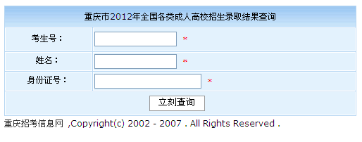 摘要 重慶2012年成人高考錄取查詢入口已經開通,考生可以通過以下入口進行查詢。