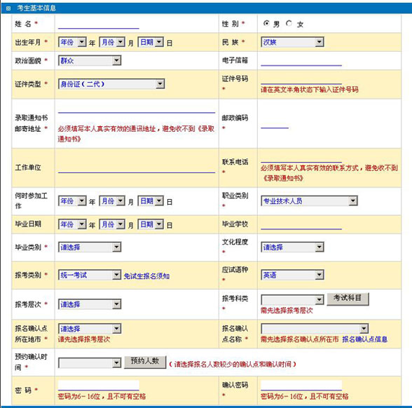 考生的相關(guān)報名信息必須是本人在網(wǎng)上填報,不允許培訓學校、助學機構(gòu)或他人代為填報??忌仨毺顚懕救苏鎸嵱行У耐ㄐ诺刂泛屯ㄓ嵎绞?手機號碼),填報的相關(guān)信息一定要準確無誤、齊全完整,不得填寫培訓學校、助學機構(gòu)、函授站等非本人的通信地址和通訊方式。