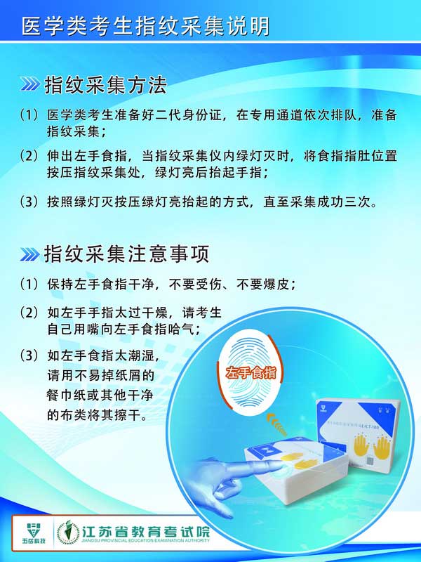 江蘇省2013年成人高考醫(yī)學(xué)類(lèi)考生指紋采集說(shuō)明