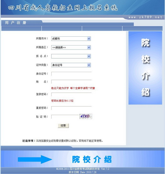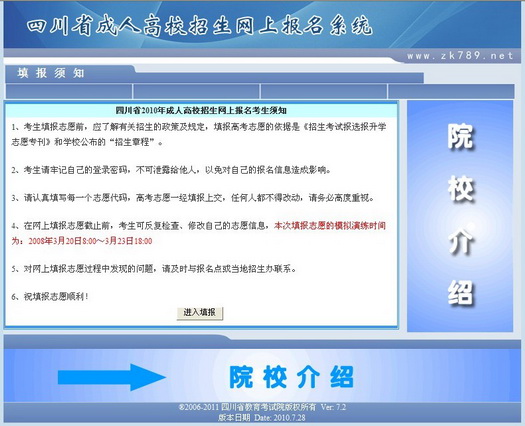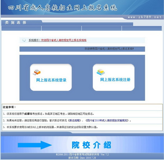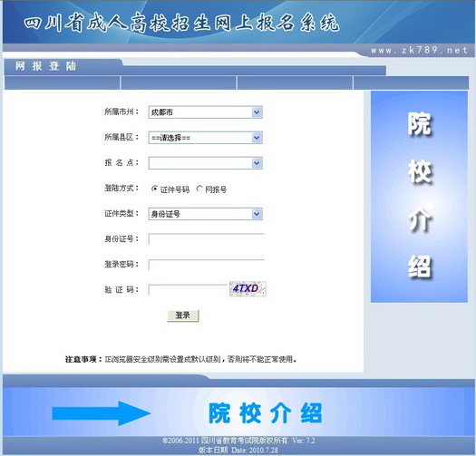 考生在每次登錄網(wǎng)上成人報名系統(tǒng)時進入該頁面,如下圖所示: