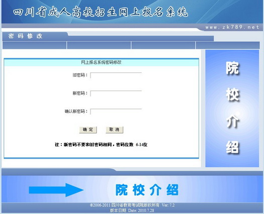 網(wǎng)上成人報名系統(tǒng)“密碼修改”頁面如下圖:
