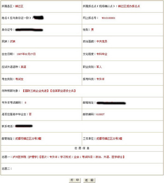 若考生成功登陸網(wǎng)上成人報名系統(tǒng)后,并且填寫了報名信息,則可通過“功能選擇”頁面下的“查看報名表”的鏈接進入該頁面。
