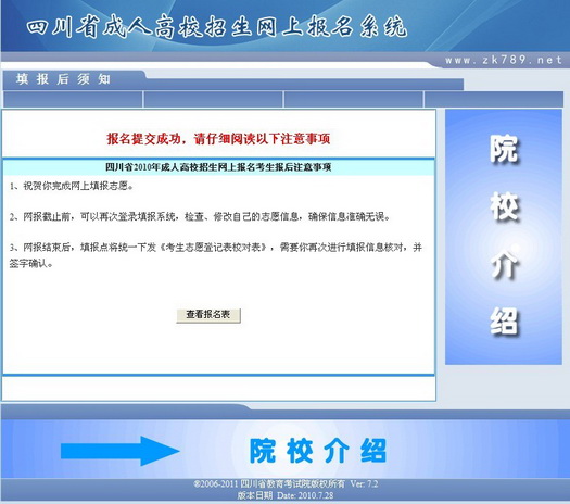 Ø 閱讀完考生填報須知后后,點擊頁面下方的[查看報名表]按鈕,即可查看考生填報的報名信息。