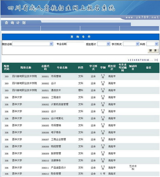考生通過此頁面可查詢招生計劃。