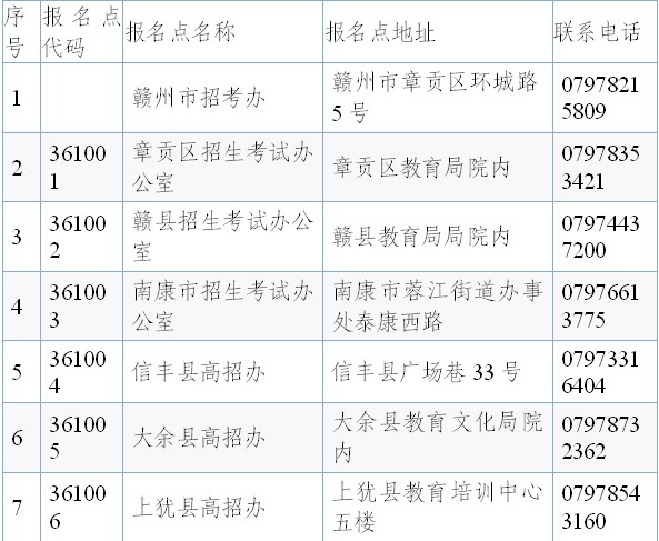 摘要 江西贛州市2013年成人高考現(xiàn)場(chǎng)確認(rèn)點(diǎn)及聯(lián)系方式