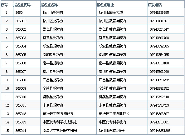 江西撫州市2013年成人高考現場確認點及聯系方式