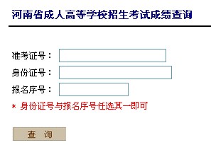 點擊進入>>河南省2013年成人高考成績查詢入口