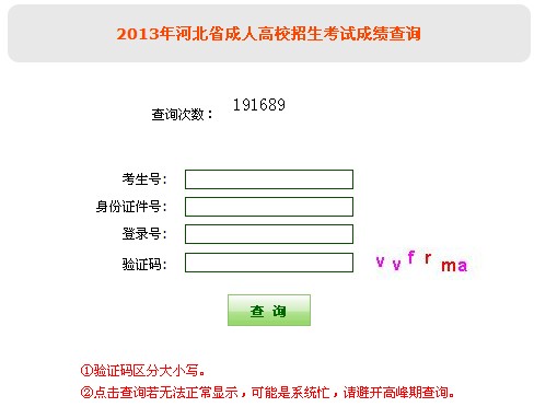 點擊進入>>河北省2013年成人高考成績查詢入口