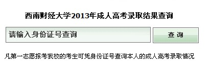 摘要 西南財經大學2013年成人高考錄取結果查詢入口
