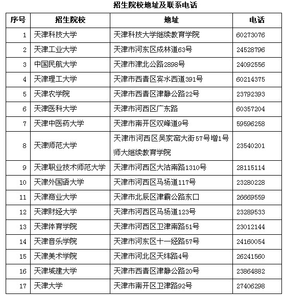 天津2013年高職畢業生服兵役退役和下基層服務后受成人教育招生院校信息