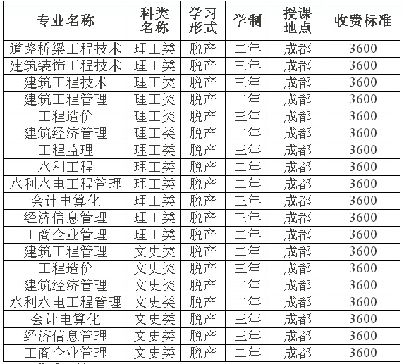 (三)收費標準:學費:大專3600元/年、本科2600元/年、住宿費:750――800元/年(六人間)。書費:預收500元/年(一年教材發完后,多退少補)