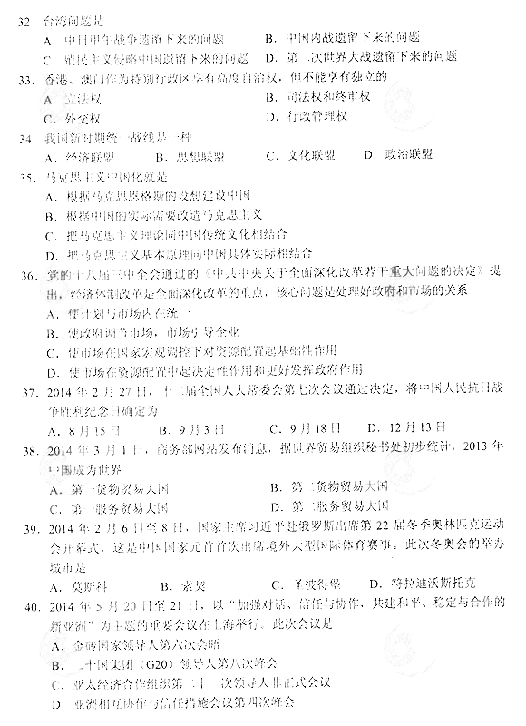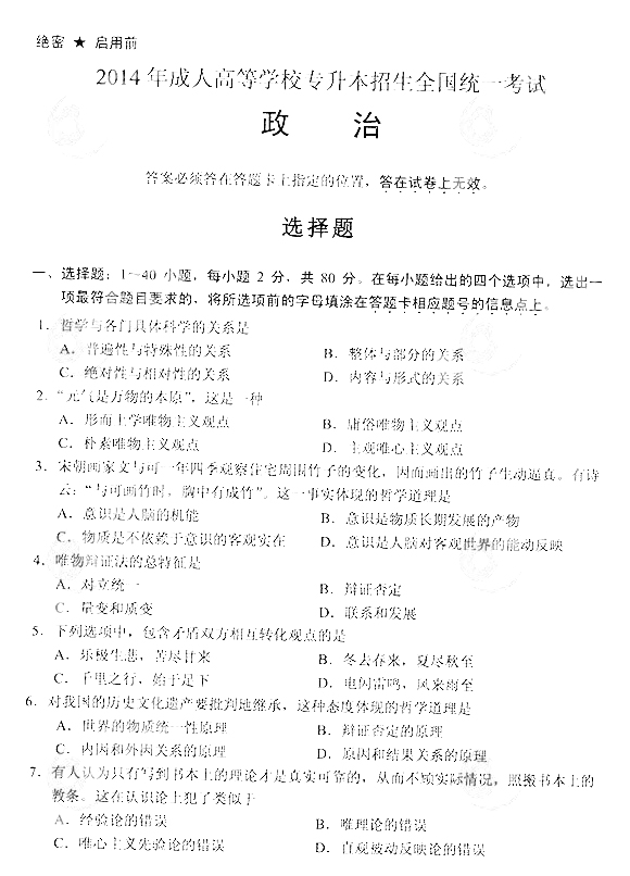 摘要 2014年成人高考專升本政治真題,環球網校為您提供!