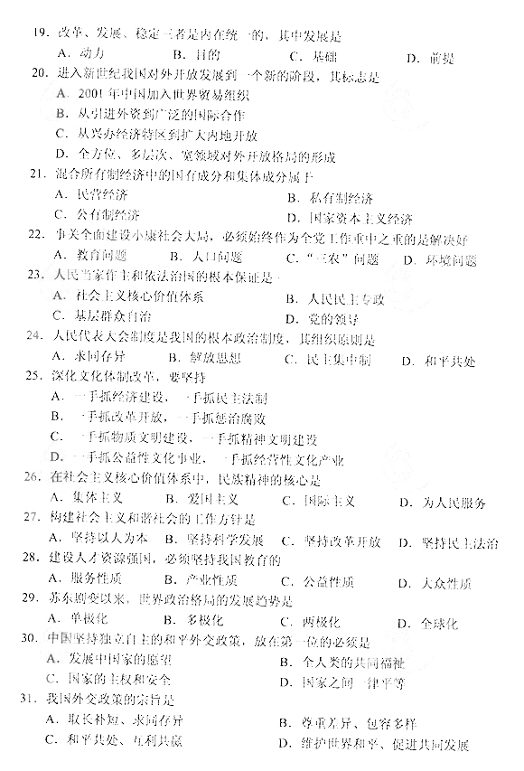 - 2025成人高考試卷政治真題及答案匯總已更新2025-10-22