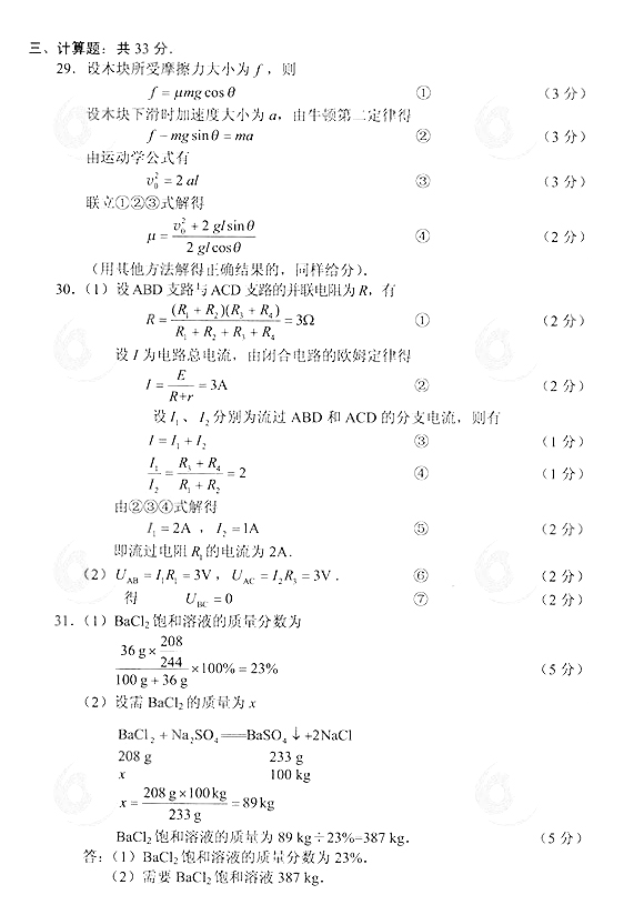 2014年成人高考高起點(diǎn)理化真題答案