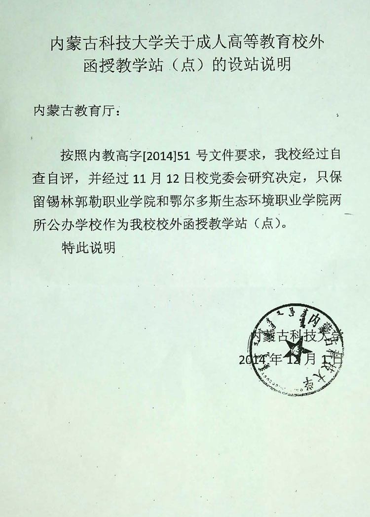 內蒙古科技大學成人高等教育校外函授教學站的設站說明