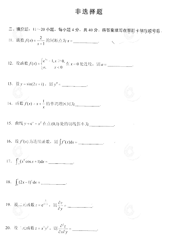 - 2025成人高考高等數學一真題+答案PDF免費下載2025-10-21